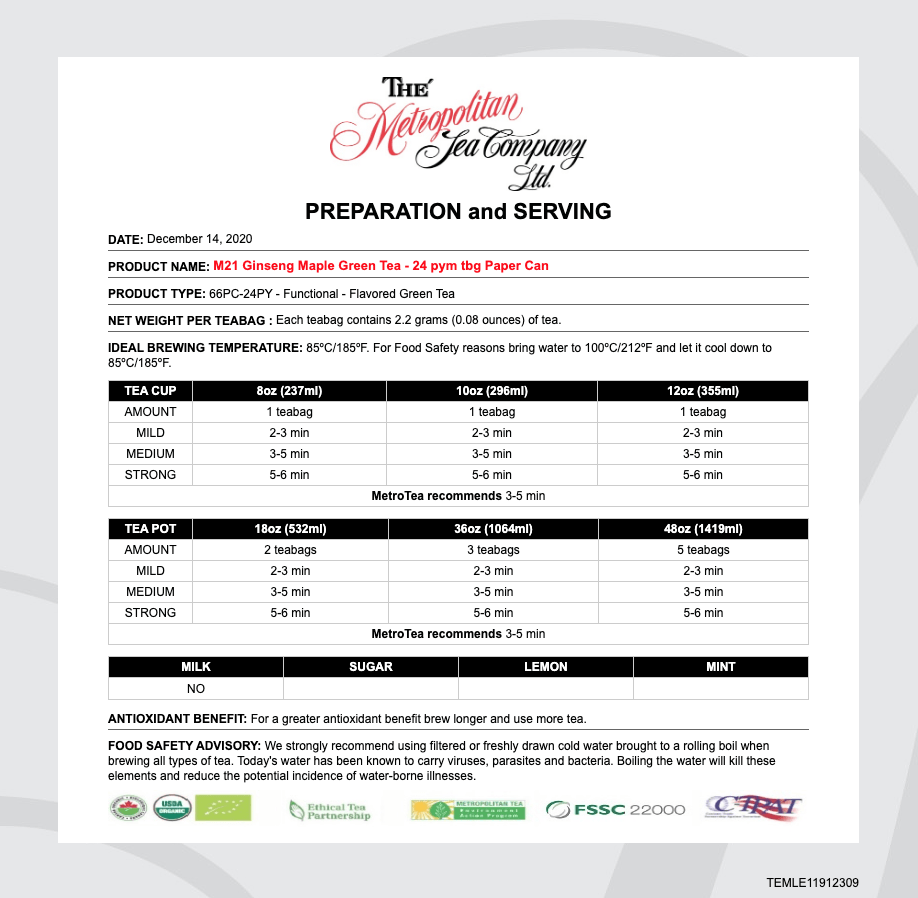 M21 GINSENG MAPLE GREEN TEA