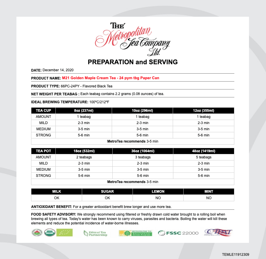 METZ offers 100% trackable teas and tisanes sourced directly from the world’s finest growers, farmers and manufacturers. A new standard in luxury food service.